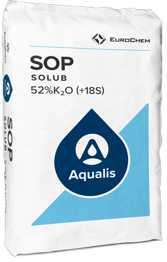 SOP Solub est un sulfate de potassium soluble, contenant moins de 0,5 % de matière insoluble. Il s’agit de l’engrais pauvre en chlore avec la plus haute concentration en potasse sur le marché. SOP Solub se présente sous forme de poudre fine et cristalline, très fluide, qui se dissout très facilement et rapidement dans l’eau. Le sulfate de potassium est idéal pour une utilisation en production sous serres, en fertigation et en application foliaire sur céréales, légumes, fruits, fleurs et cultures ornementales. SOP Solub contribue au bon fonctionnement du métabolisme des hydrates de carbone. L’application de sulfate de potassium améliore la résistance des cultures aux stress.